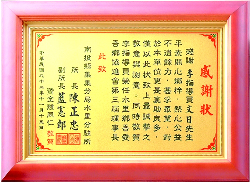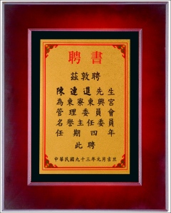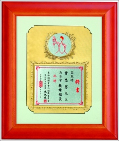 商品編號:Q02 商品名稱:高級壓紋獎牌(台灣實木框) 商品尺寸:外框37*32 建議售價:1600 元 本站優惠價:請來電洽詢!!